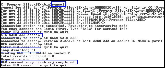 Enter quit to exit the syncui utility.