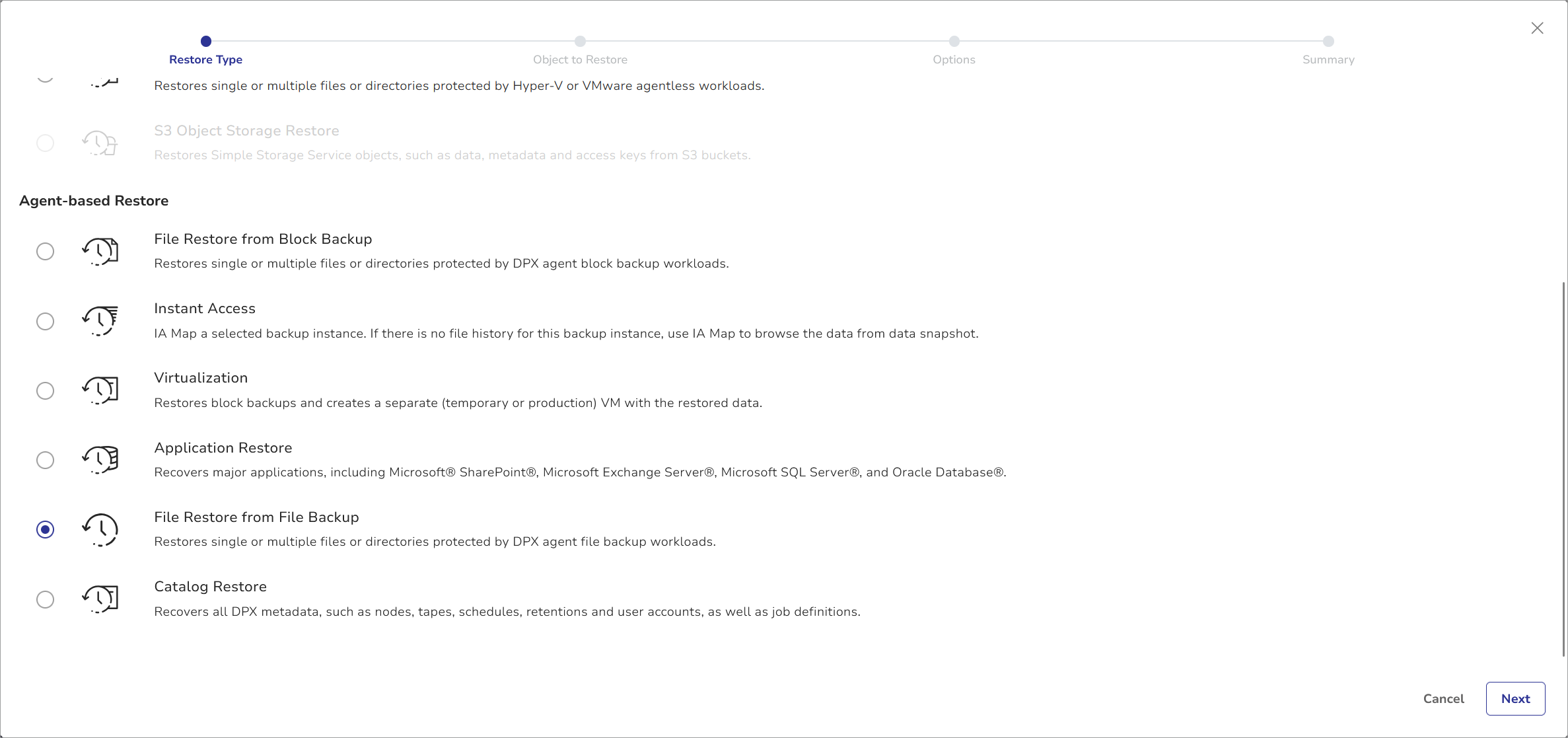 1. Select File Restore from File Backup and click Next.