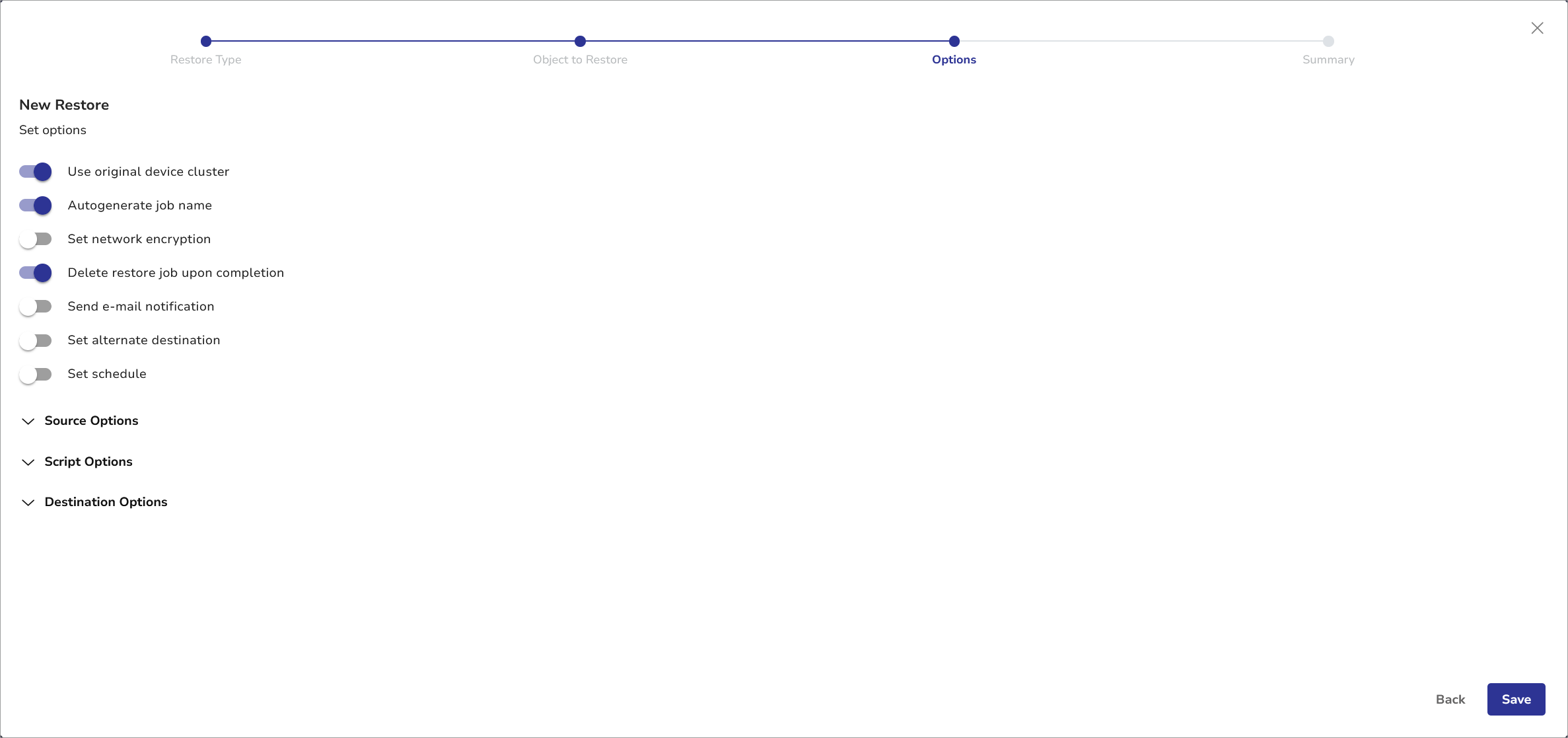 1. Specify job options. This job can be tailored to meet specific recovery needs through a variety of settings and parameters.