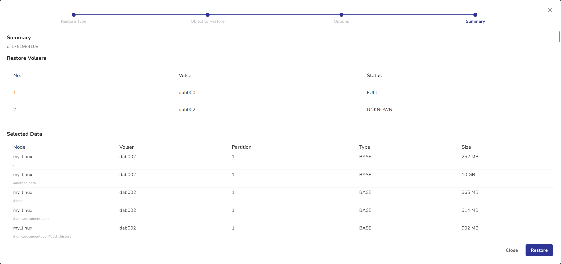 1. Review the summary of your job and click Restore. The job will run.