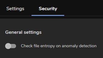 In General settings, you can toggle the analysis of file entropy and magic numbers, a critical feature for determining file encryption. The entropy analysis inspects the file header for randomness, indicative of encryption. Magic numbers analysis assesses the file signature to identify standard file extensions, indicating unencrypted files.
