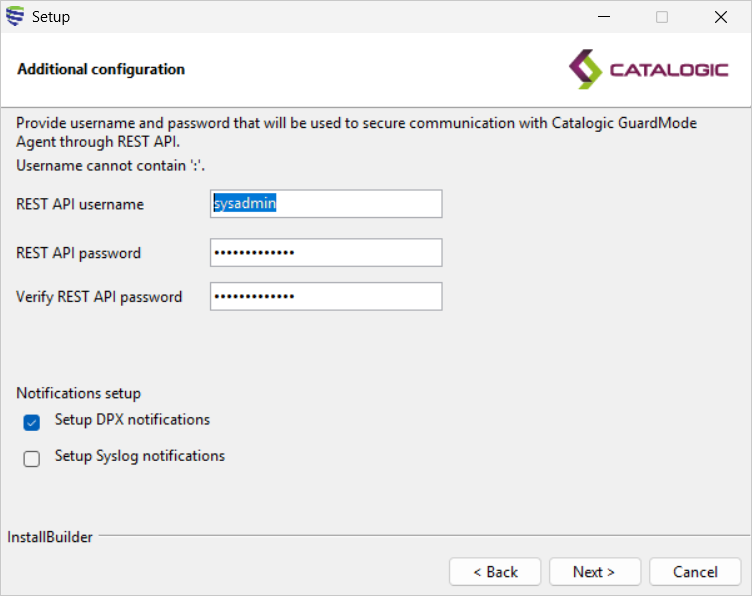 To configure GuardMode Agent with Syslog, tick the Setup Syslog notifications checkbox during the Additional configuration step.
