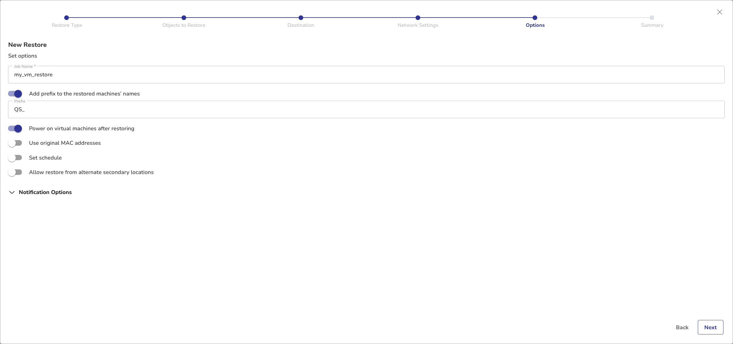 Switch the Add prefix to the restored machines’ names to on, then specify a short prefix to distinguish your restored machines from the original ones.