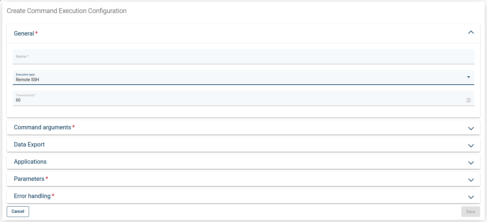 Execution Type - either on the Node or a command to be executed remotely.
