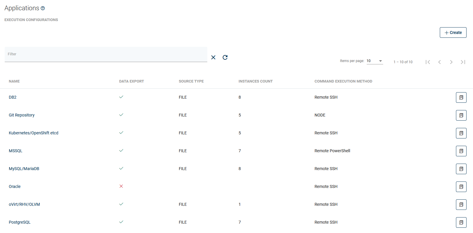 Using this tab, you can create a command execution configuration, i.e. commands executed for the proper backup of your application (or directed to the script file).