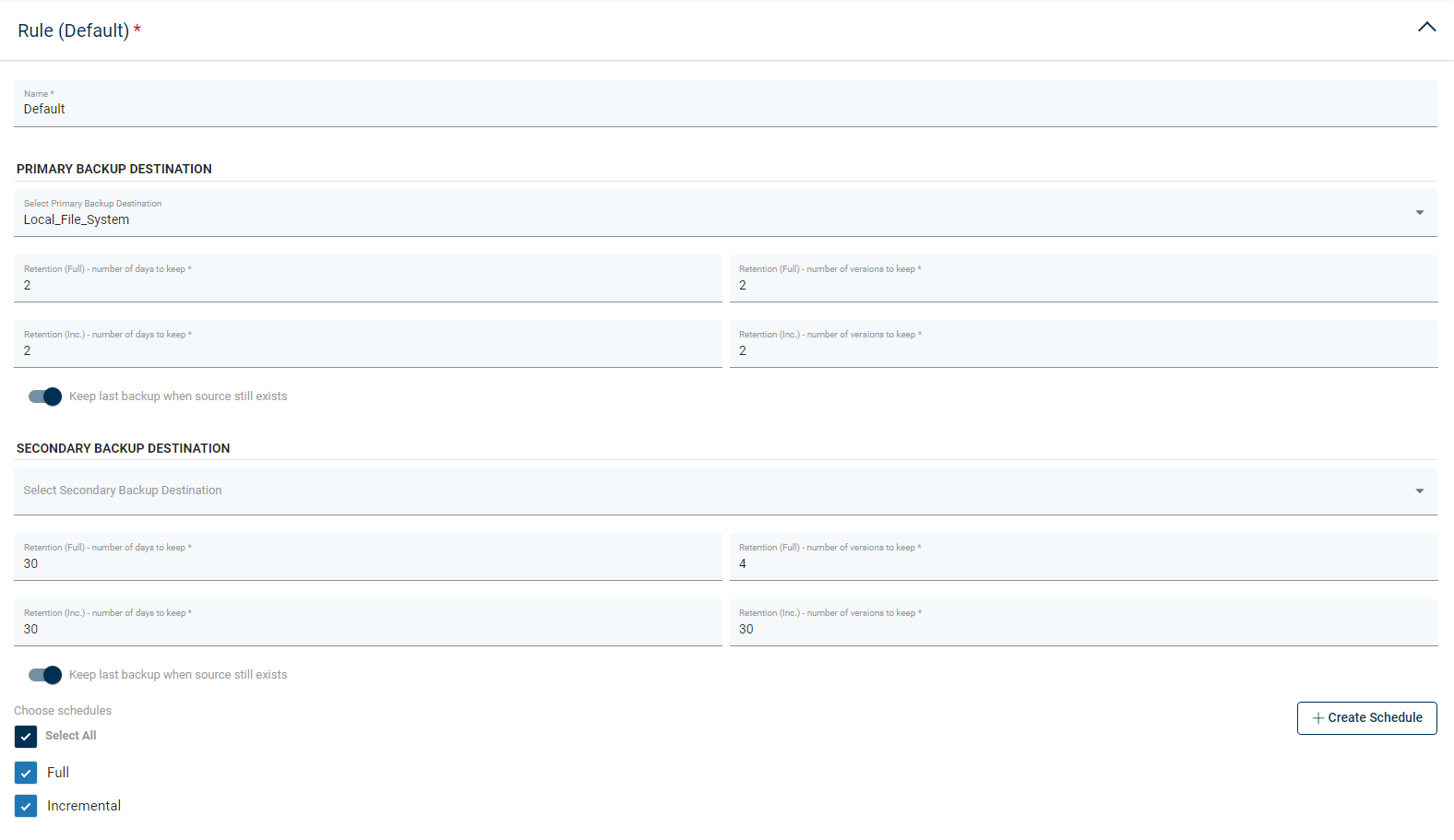Note. You can select Primary and Secondary Backup Destination in one Rule.