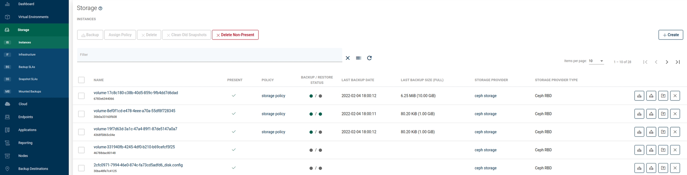 To mount backup, go to the Instances tab under the Storage Providers section on the left side menu, then click on the mount icon next to the chosen storage instance ![]()