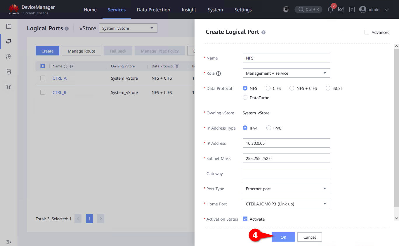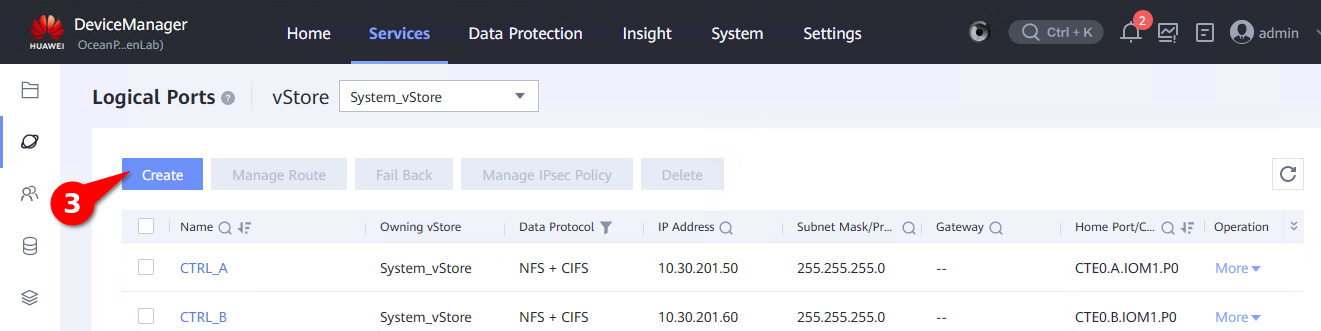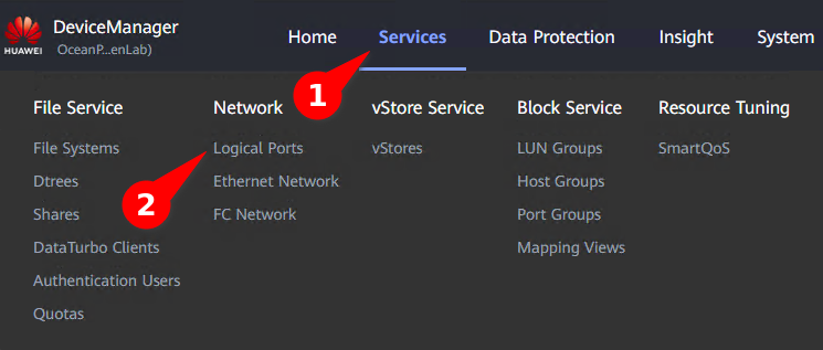 1. Go to Services -> Network -> Logical Ports