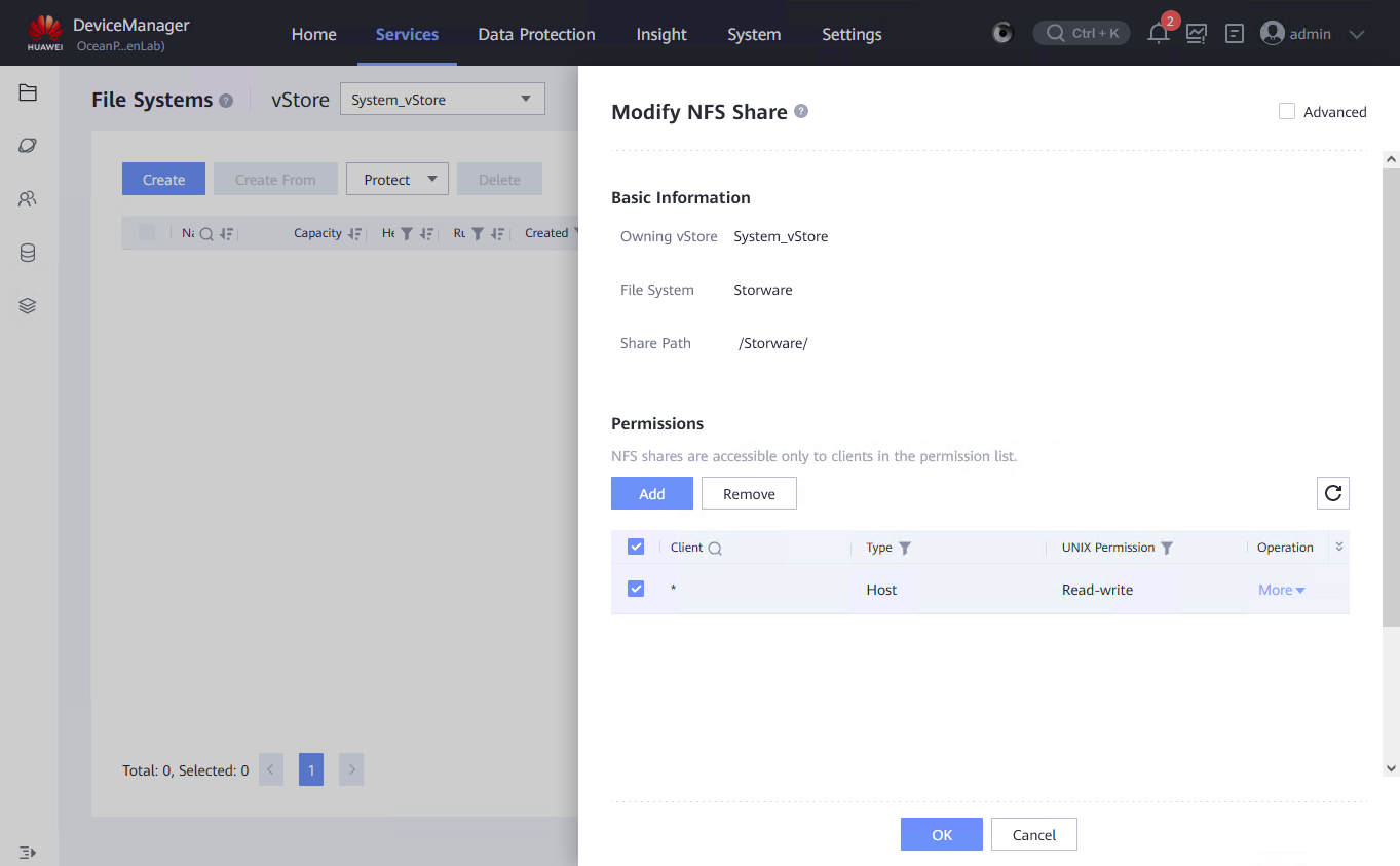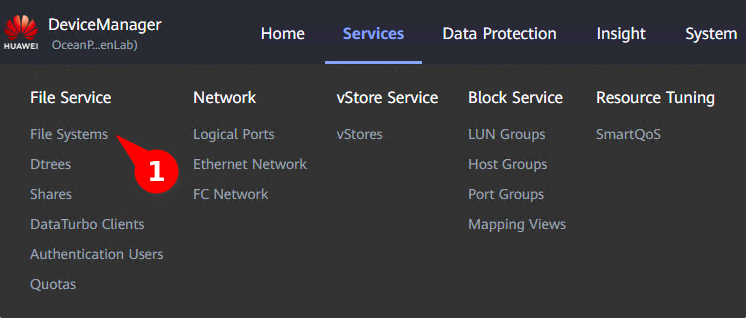 1. Go to Services -> File Service -> File Systems