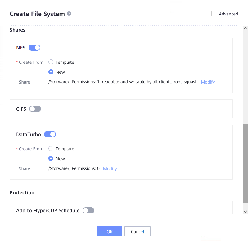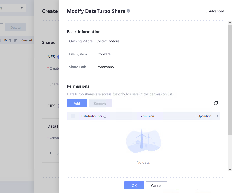 • With NFS, and DataTurbo share