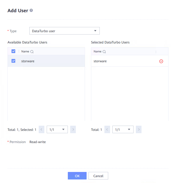 3. Create DataTurbo storage object, with DataTurbo user
