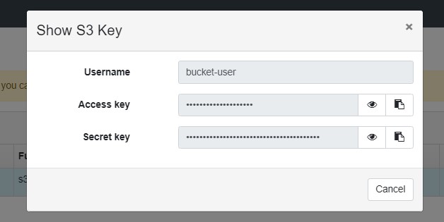 The access key and secret key will be needed to create a backup destination in vPlus.