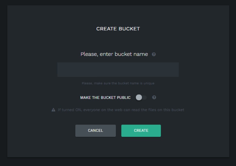 Enter a name for the new bucket and click on Create button.