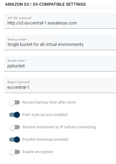 Wasabi is an S3-compatible backup provider. Configuration as the backup destination is similar to AWS S3.