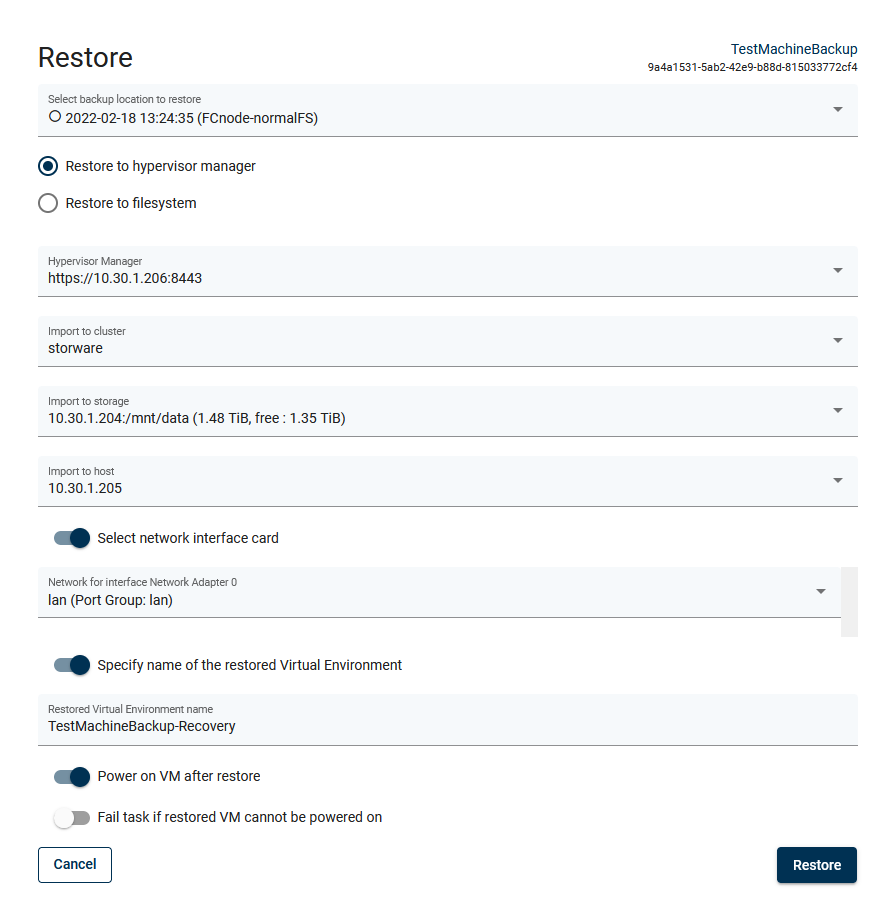 *Restore to hypervisor manager