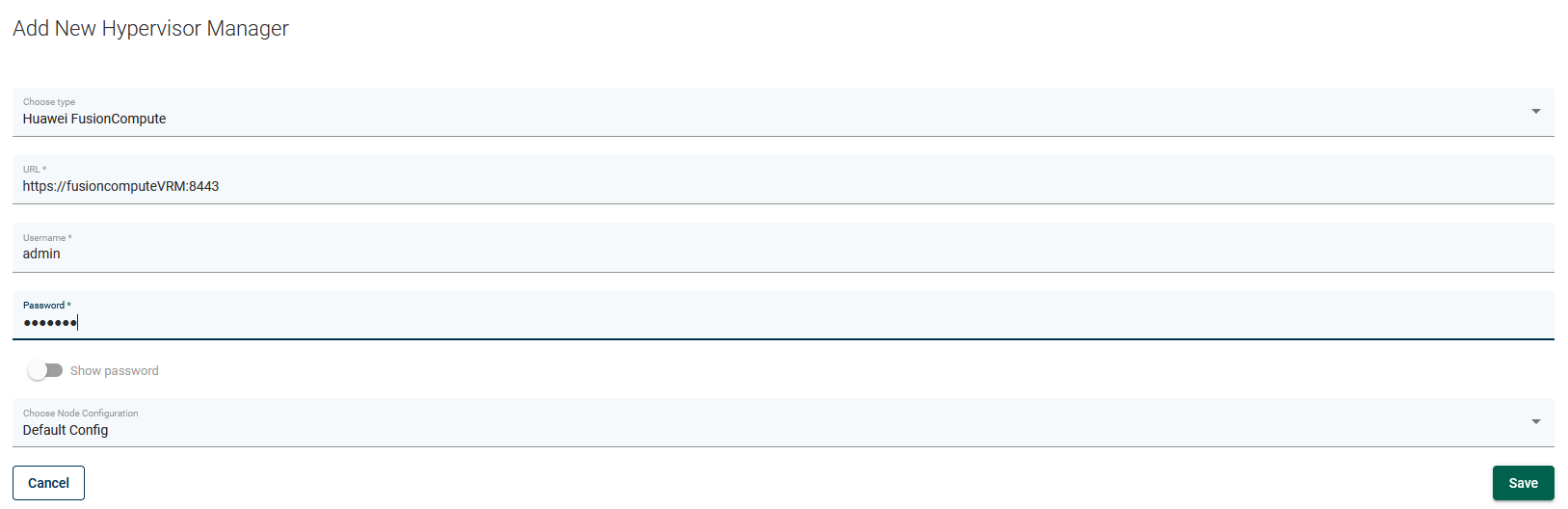 Creating a FusionCompute HypervisorManager