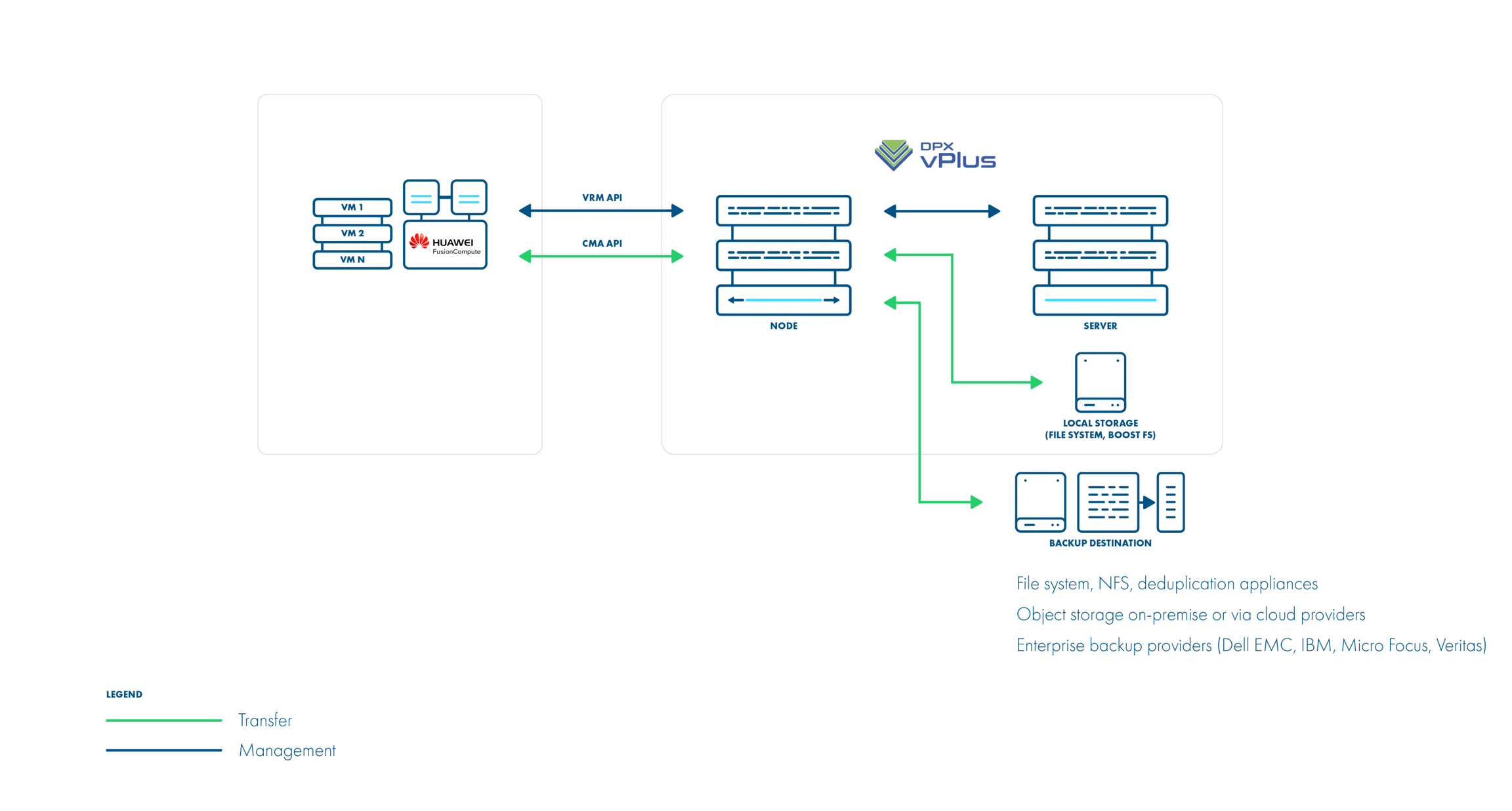 Requires a connection to each Hypervisor (data transfer during the backup/restore process will be performed directly between the node and the CNA/Hypervisor on which the VM is running).