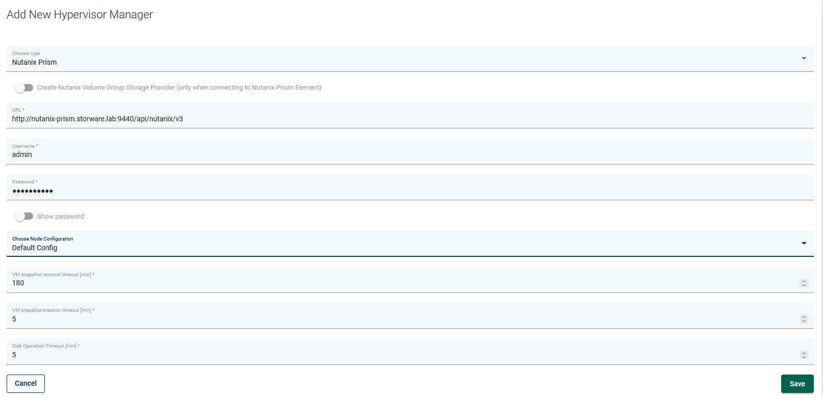 When adding Nutanix hypervisor managers, use a URL similar to the following: