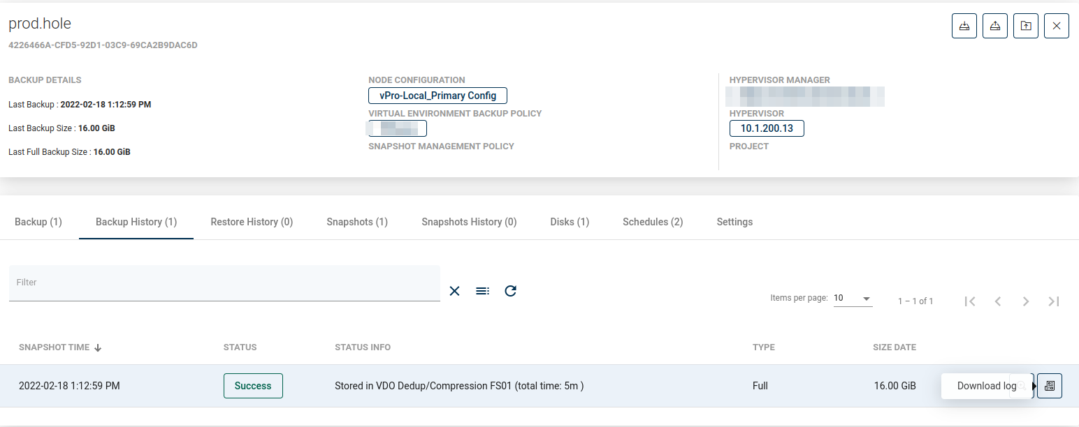 Check the vPlus node log file, accessible via: a. vPlus Dashboard: Top right corner → Logs → Download vprotect_daemon.log b. SSH: Connect to vPlus node, navigate to /opt/vprotect/logs/<node_name>