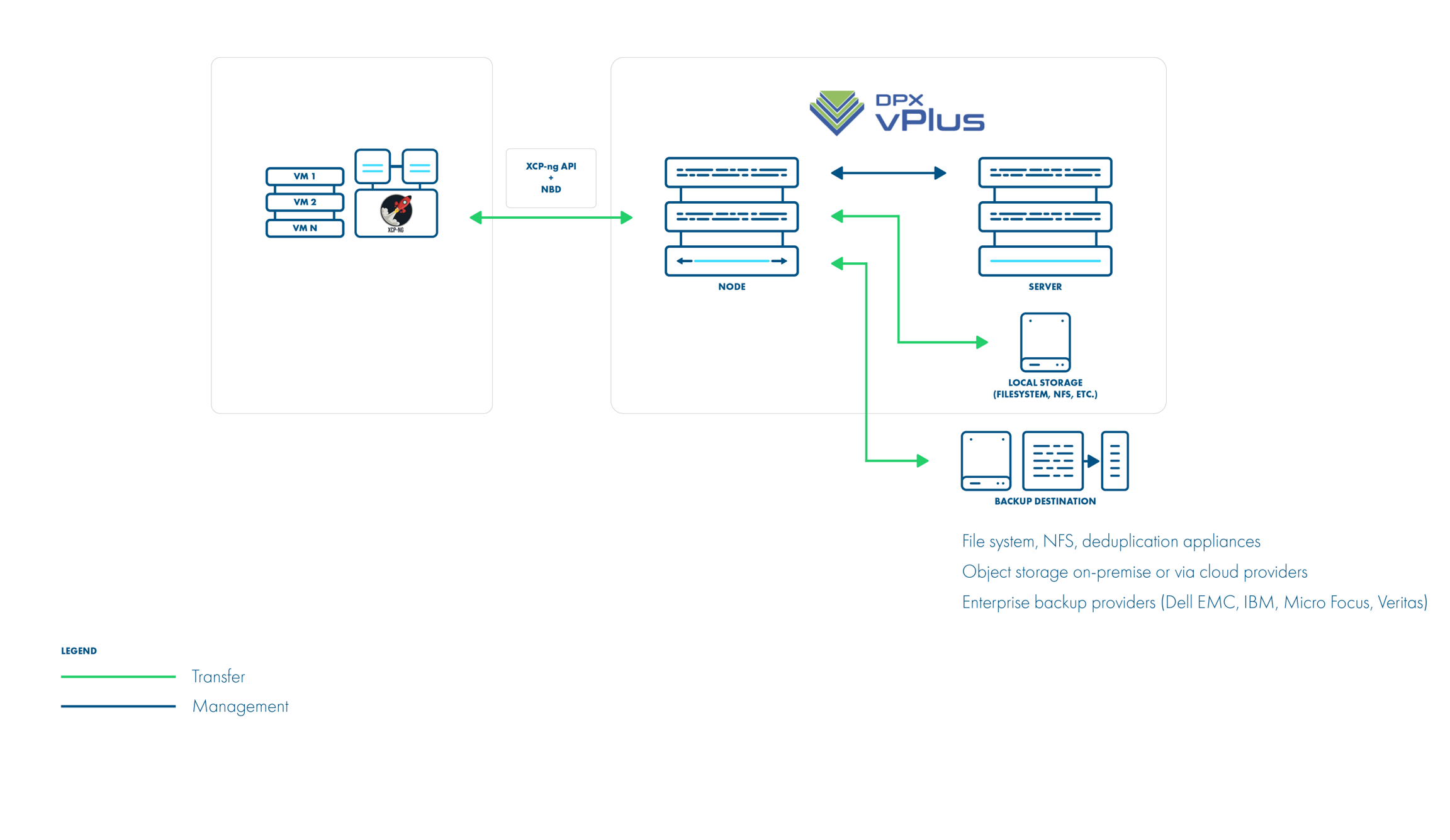 In this strategy, the VM is exported as a single XVA bundle containing all the data. Incremental backup is also supported. Data is transferred directly from the XenServer API without the need to set up anything on the hosts.