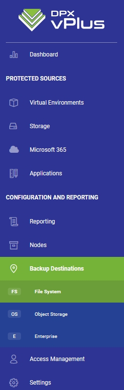 /etc/sudoers.d/directory to enable thevprotectuser to execute privileged script (like chown operations in some file system locations):%vprotect ALL=(root) NOPASSWD: /opt/vprotect/scripts/myscripts/privileged.shOpen the "BACKUP DESTINATIONS" section from the left menu: