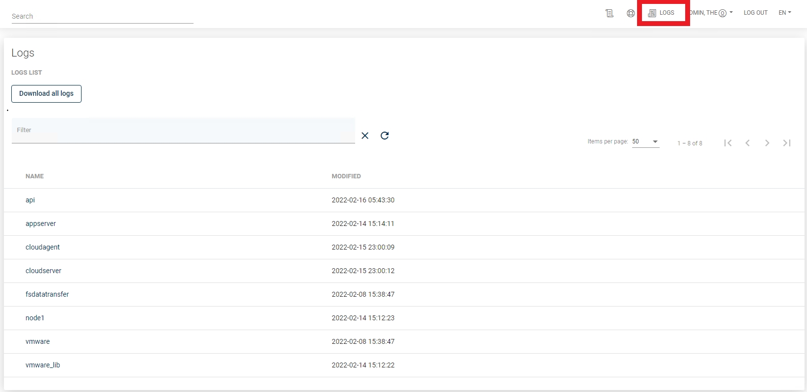 - this is the first place to check for the root cause of errors. All log files are also accessible from Logs
