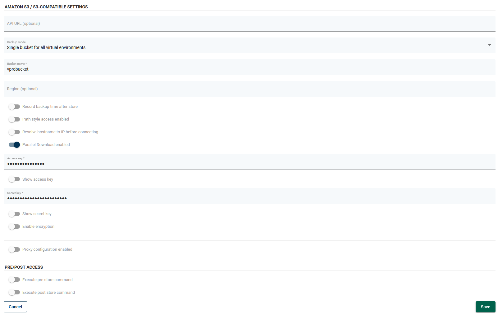 Now go to the Backup destination tab on the vPlus dashboard and change the sub-tab to object storage. Provide the bucket name and key credentials, and then configure the remaining options according to your requirements: