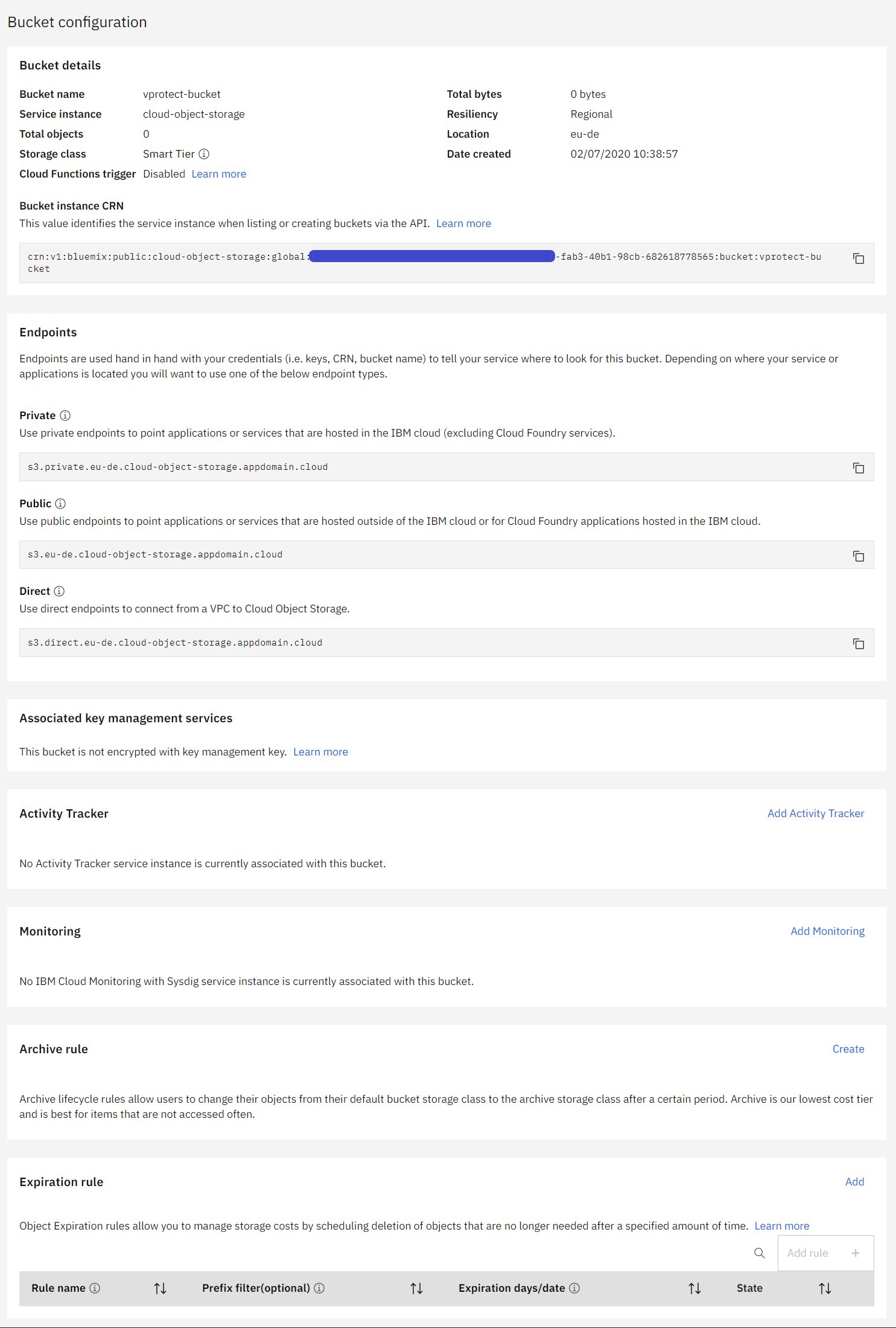After creating the bucket, you'll see the objects page. From the menu on the left, select the configuration tab. You will see a summary of the resource you have created. To create a backup destination, you will need the "public" address from the endpoints section from here.