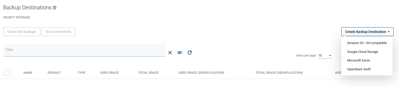 Now we can go to the vPlus Dashboard. Open the "Backup Destination" tab from the left side menu, then the sub-tab "Object Storage" and choose "Amazon S3 / S3-compatible" as the new type of backup destination.