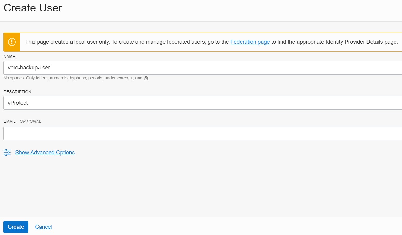 Now we need to create a user that we will use to authenticate our backup destination. Please go to the Users tab under the Identity tab in the menu on the left.