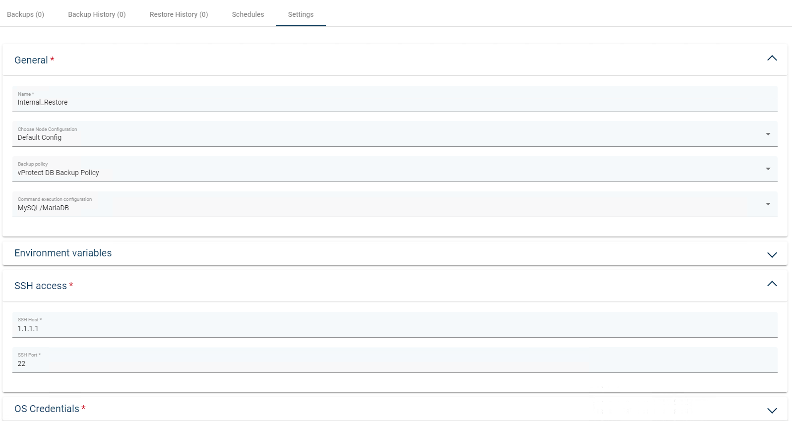 Finally, the last tab. The first two options allow you to change the node selected to perform backups and policies assigned to the application. The third allows you to choose the execution configuration.