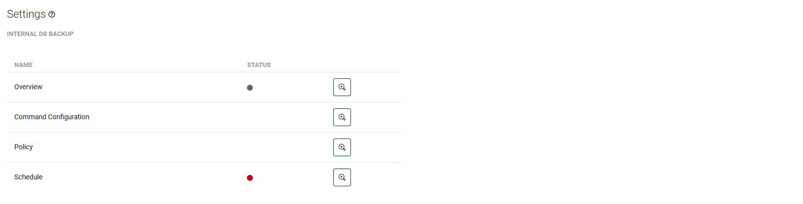 It allows you to control the process of creating an internal database backup from one place. Clicking the magnifying glass icon will take you to the appropriate menu.
