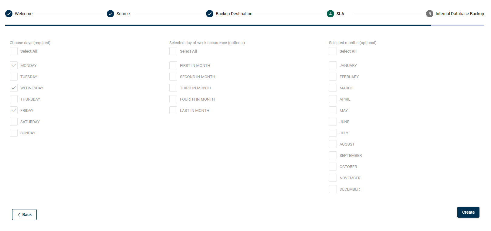 check the Administration section for details of Backup SLAs to each protected platform.