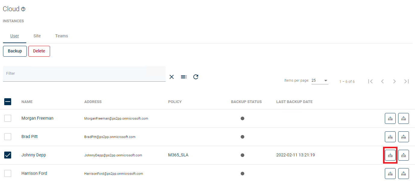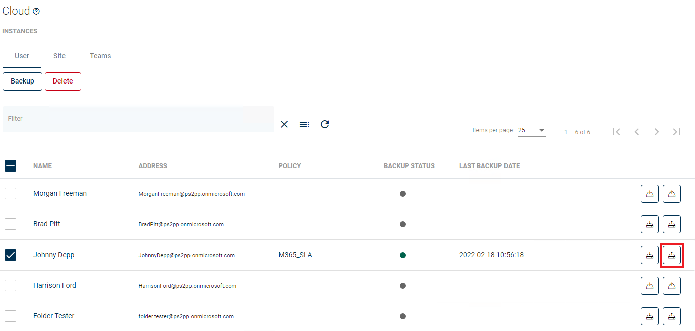 Search for one of the cloud instances you want to back up and click Backup the button next to it.