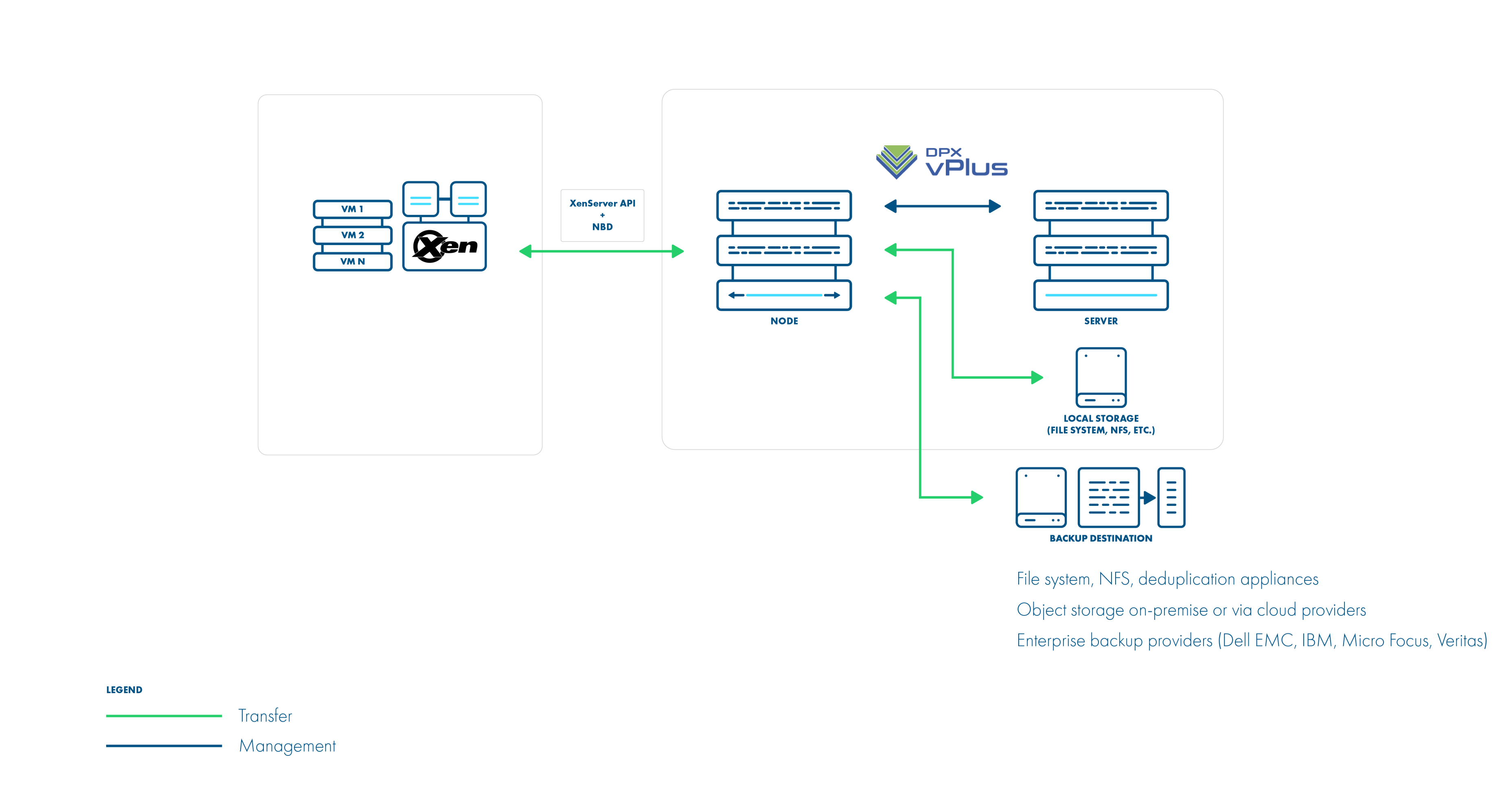- data export directly from the hypervisor using hypervisor's API - both full (XVA) and delta (VHD for each disk)