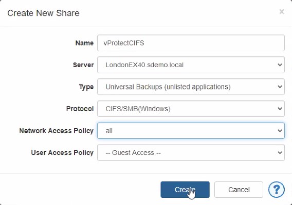 DPX vPlus supports integration with Exagrid. You can create two types of shares (NFS and CIFS), but in this case, we recommend using a CIFS share as the backup destination.