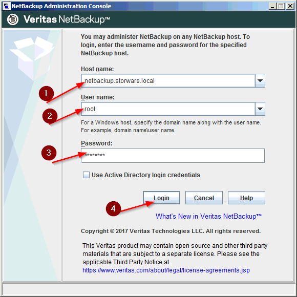 - To do this, please log in to the Netbackup Administration Console: