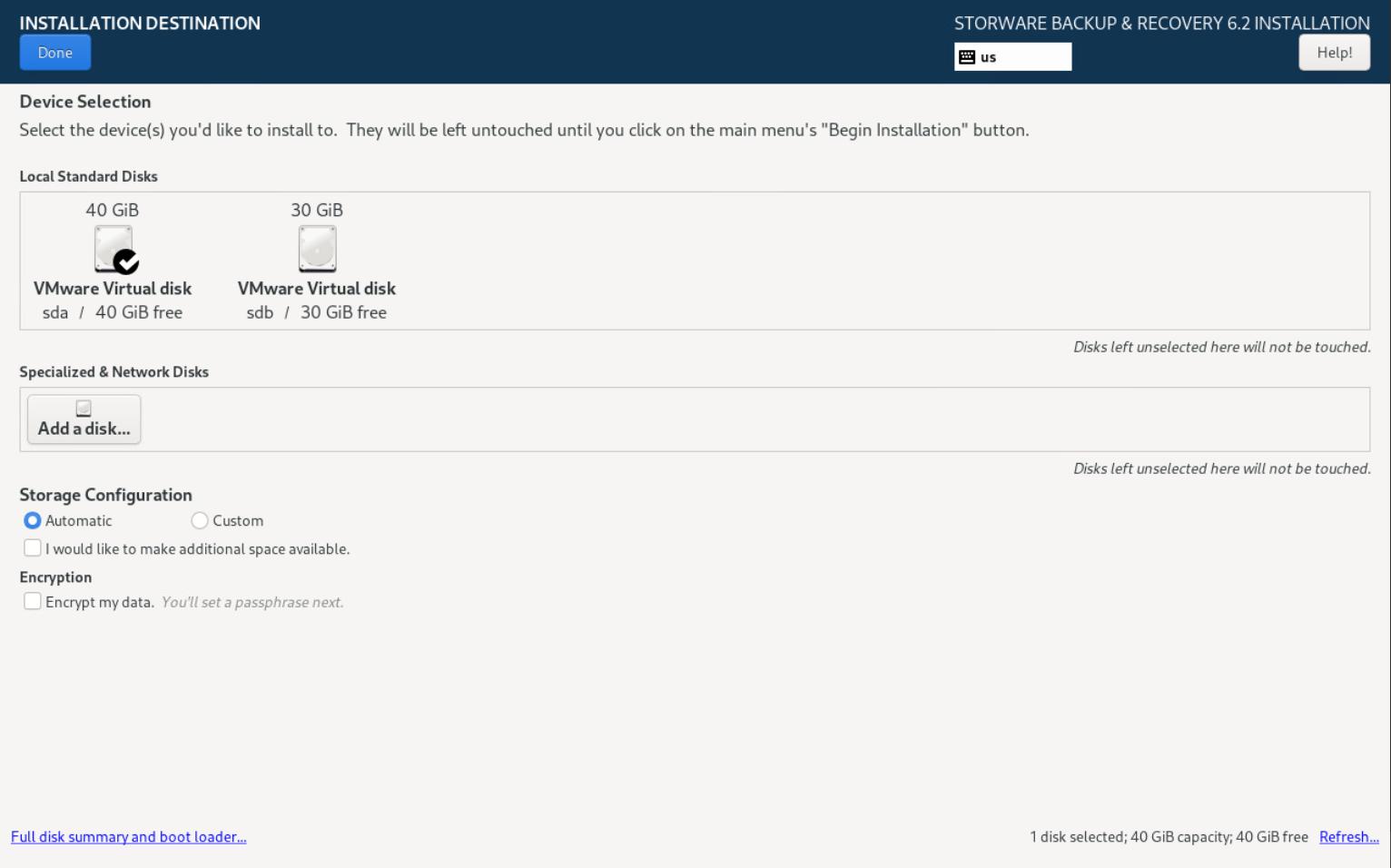 infoDuring the installation, select only the drive designated for the system, the other drives will be used as data storage for your backups automatically during the initial configuration.