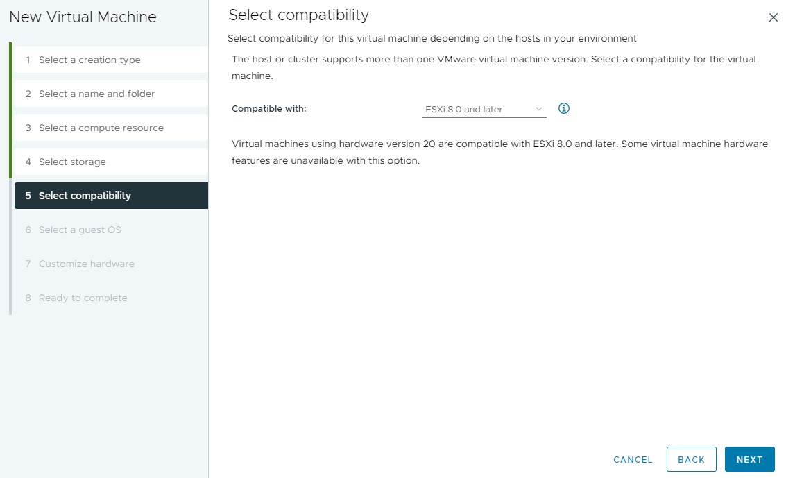 Choose the compatibility mode based on your virtualization platform's requirements.