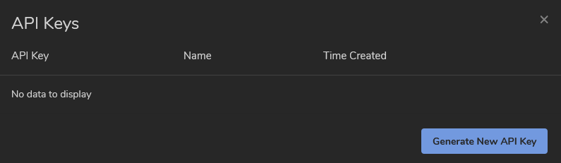 In the popup dialog, click Generate New API Key.