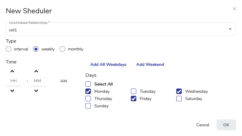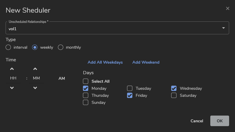 Scheduling a replication using vStor Web Interface