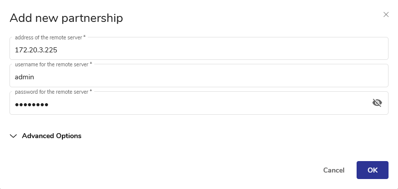 Creating a new partnership using vStor Web Interface