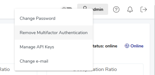If you want to remove MFA from vStor, click on your on the topbar and select Remove Multifactor Authentication from the dropdown menu: