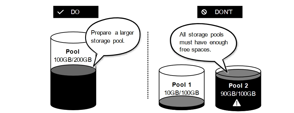 The backup storage pool should not be used for other purposes, such as installing applications.