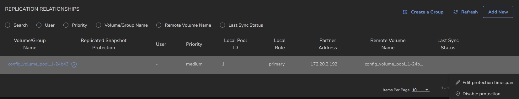 vStor allows enabling deletion protection for replicated data when creating new replication relationships. This feature creates immutable, Write Once Read Many (WORM) storage on the replication target, preventing any modifications or deletions of replicated data.