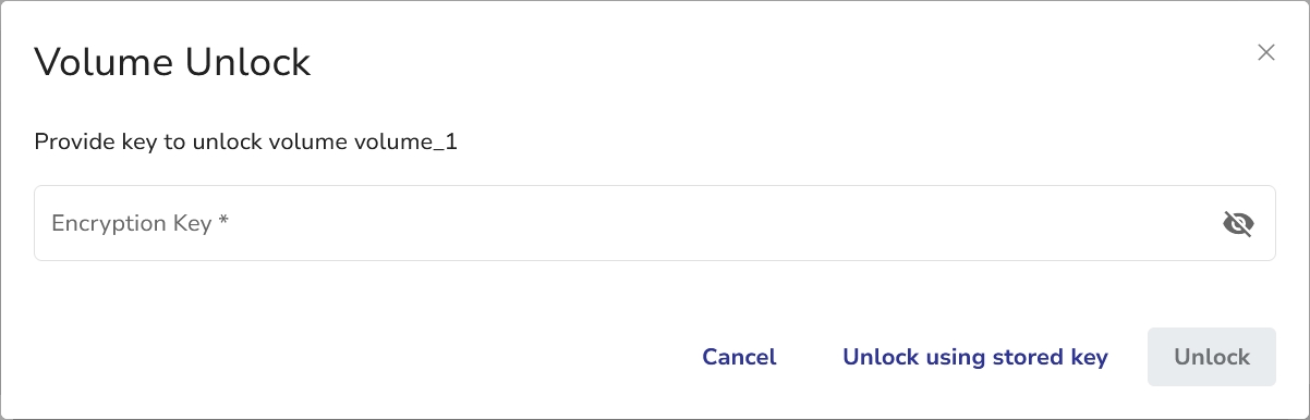 Hover over the volume for which you want to add the encryption key and click the + symbol. The Add Encryption Key dialog will open.