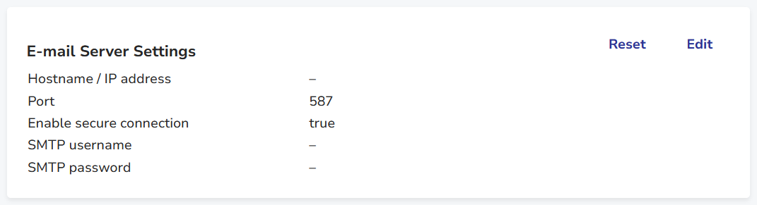 You can edit this section by clicking the Edit button to launch the Edit E-mail Server Settings dialog window.