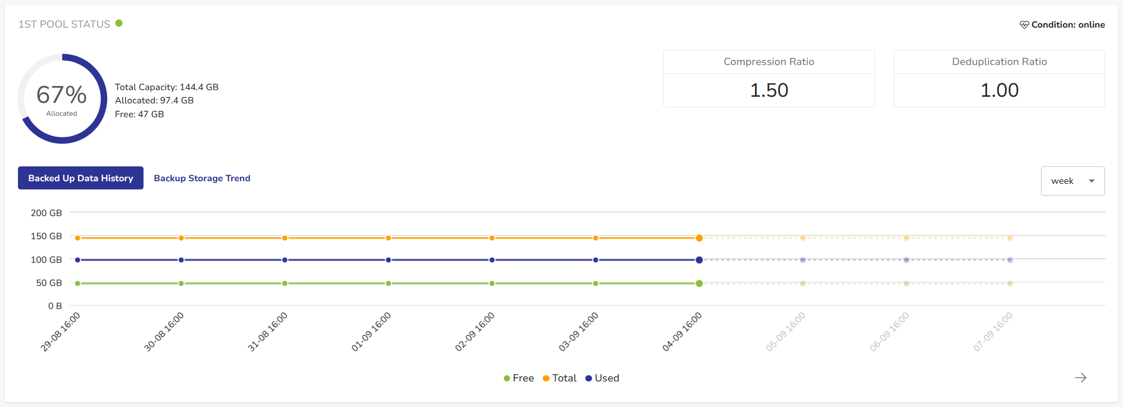 - backed up data history or backup storage trend.