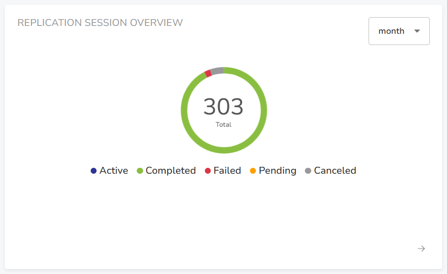 This section displays a brief summary of replication sessions within the last day, week or month. Click the arrow at the bottom of the pane to go to the Replications list.