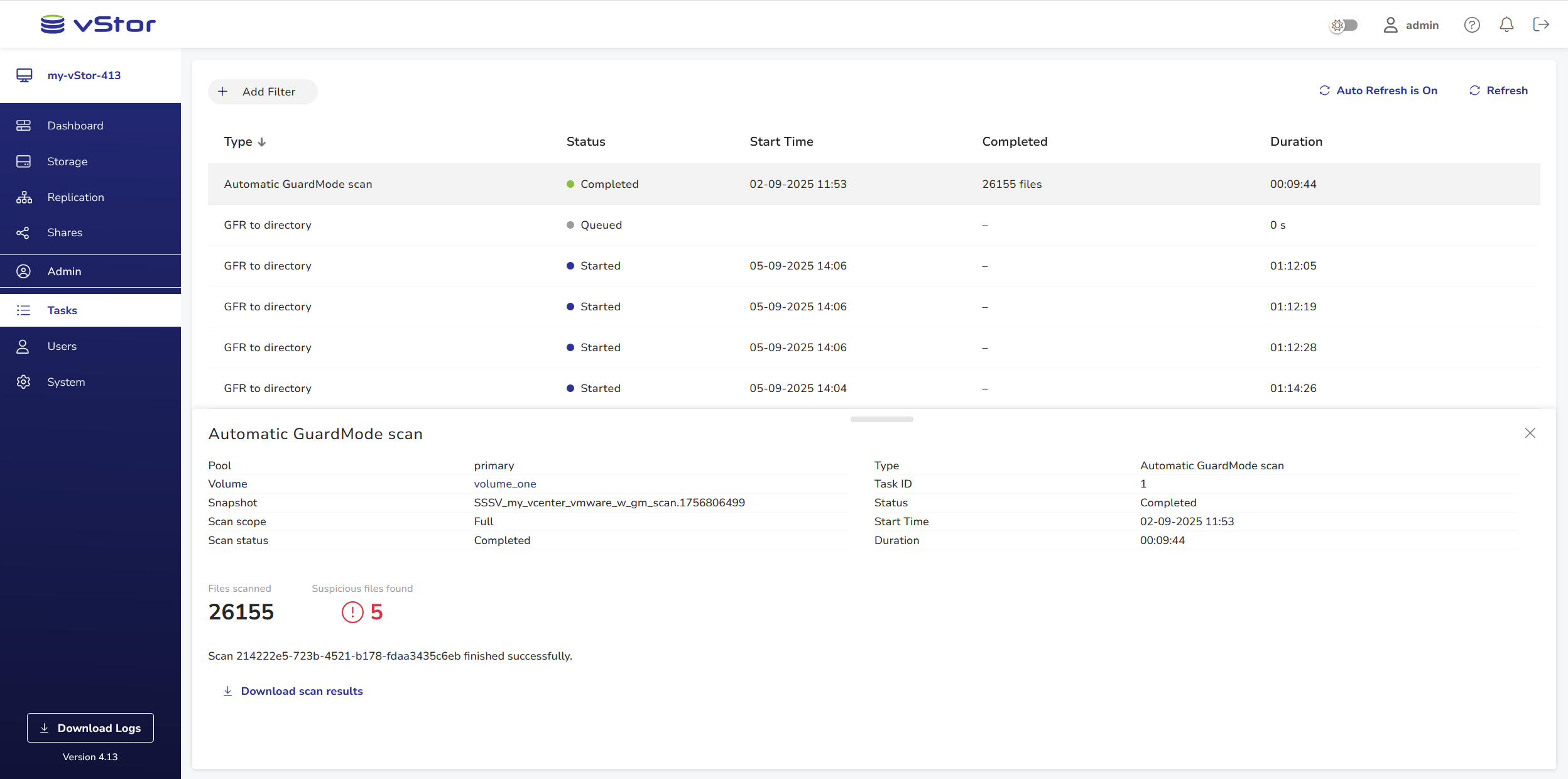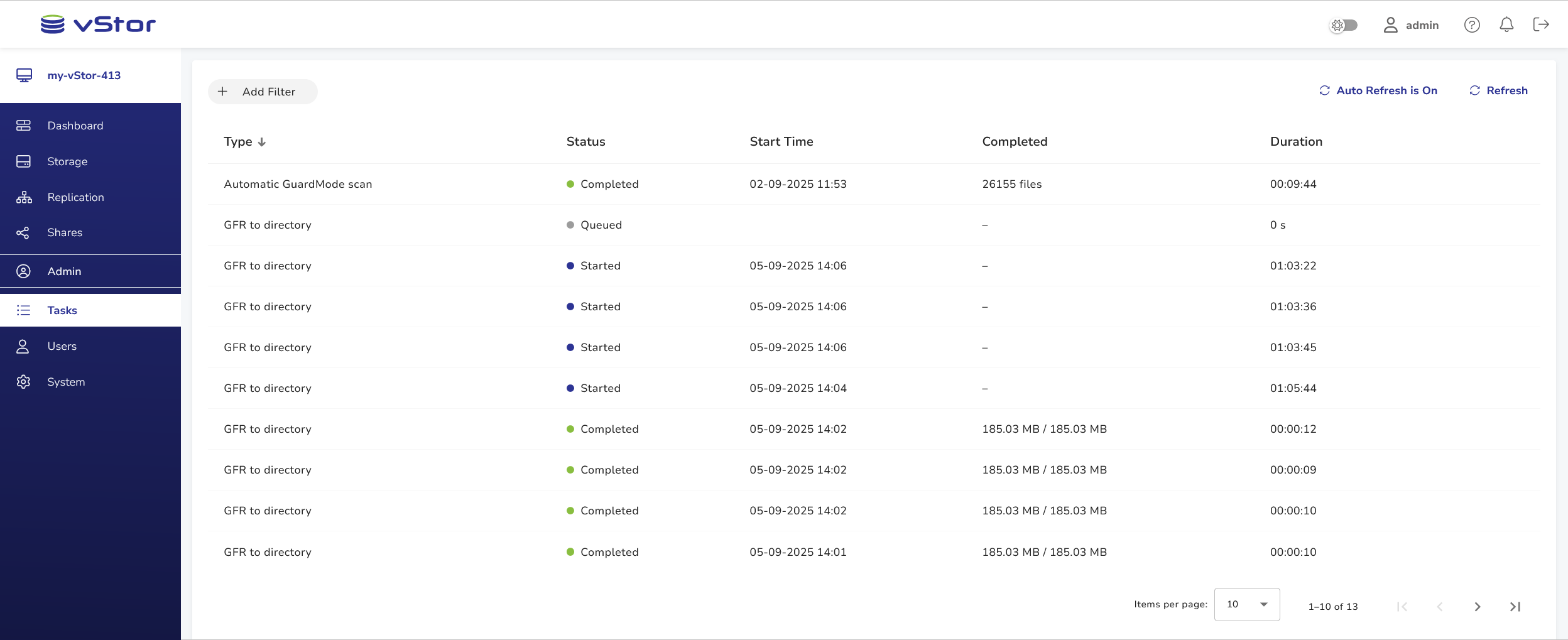 This section includes Automatic GuardMode scan, GFR to directory and Cloning offloaded snapshot tasks.